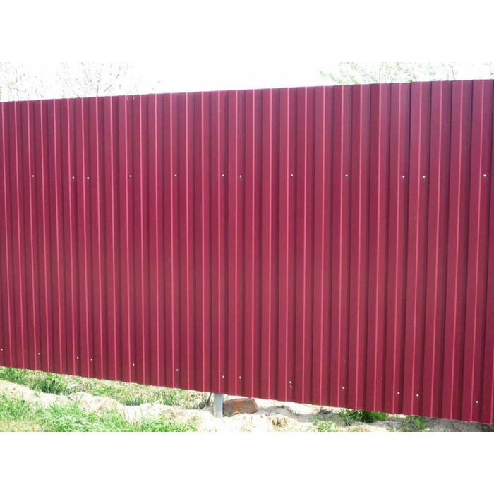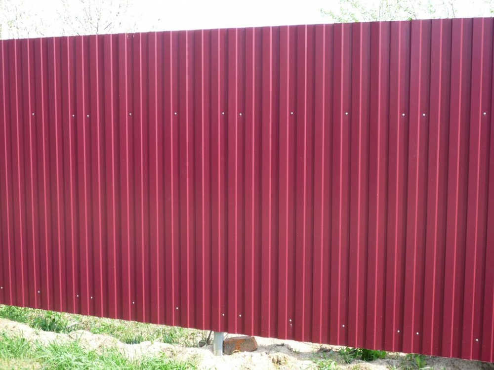 Профилированный лист С-8x1150-A (ПЭ-01-3005-0,45) часто используется в Мшинской для обустройства забора. Изначально он представляет собой стальной оцинкованный лист с покрытием. Толщина металла с цинковым и защитно-декоративным слоем — 0.45 мм.Проходя процедуру холодного проката, сталь принимает волнообразный вид. Такая форма придает профилю несущую способность.